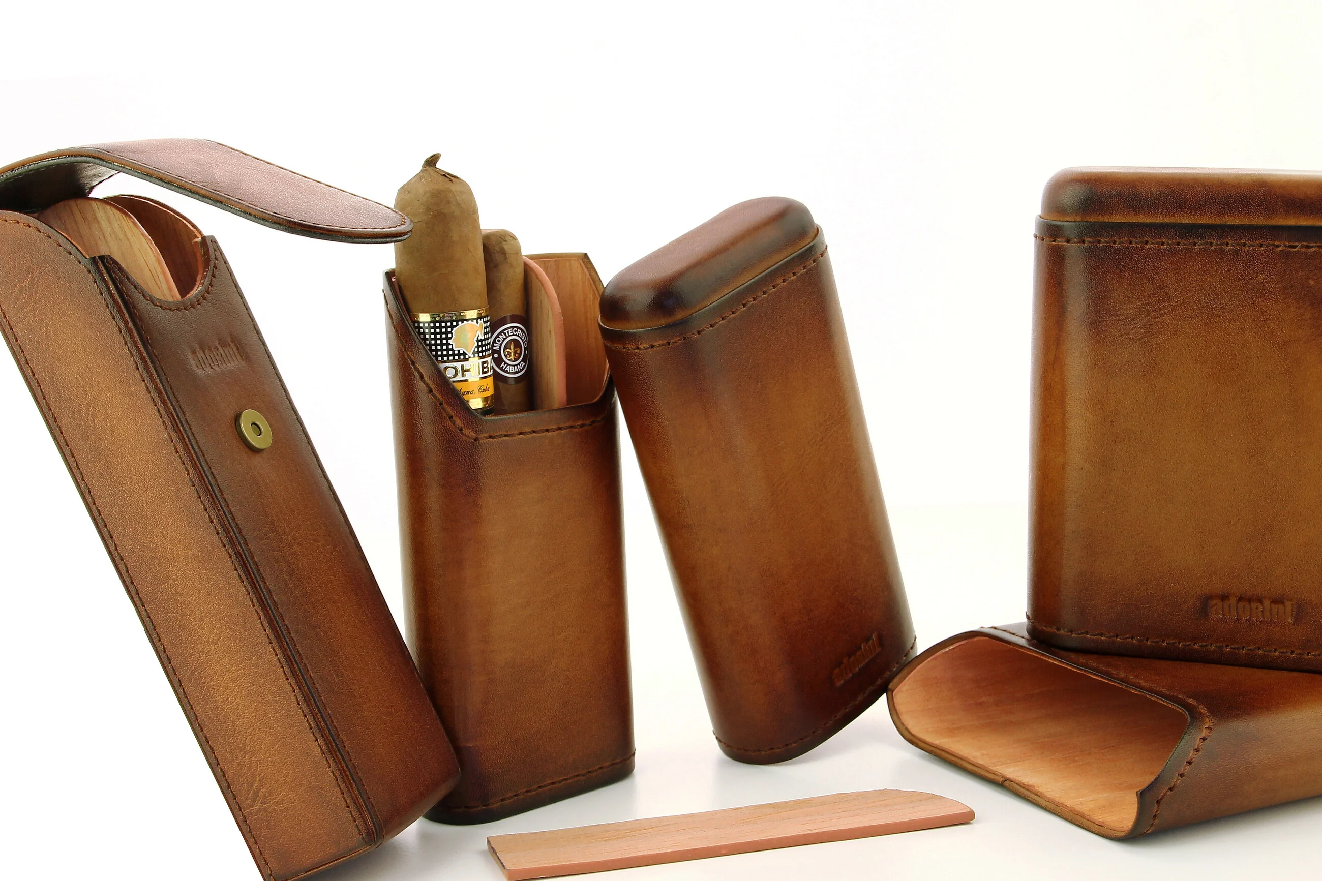 adorini, genuin vintage, læretui for 3-5 sigarer, brun