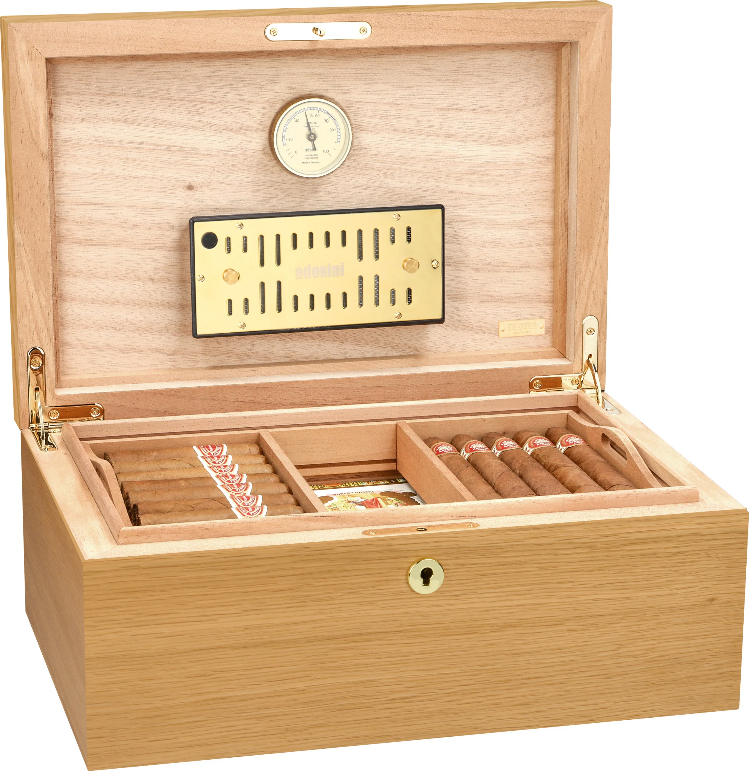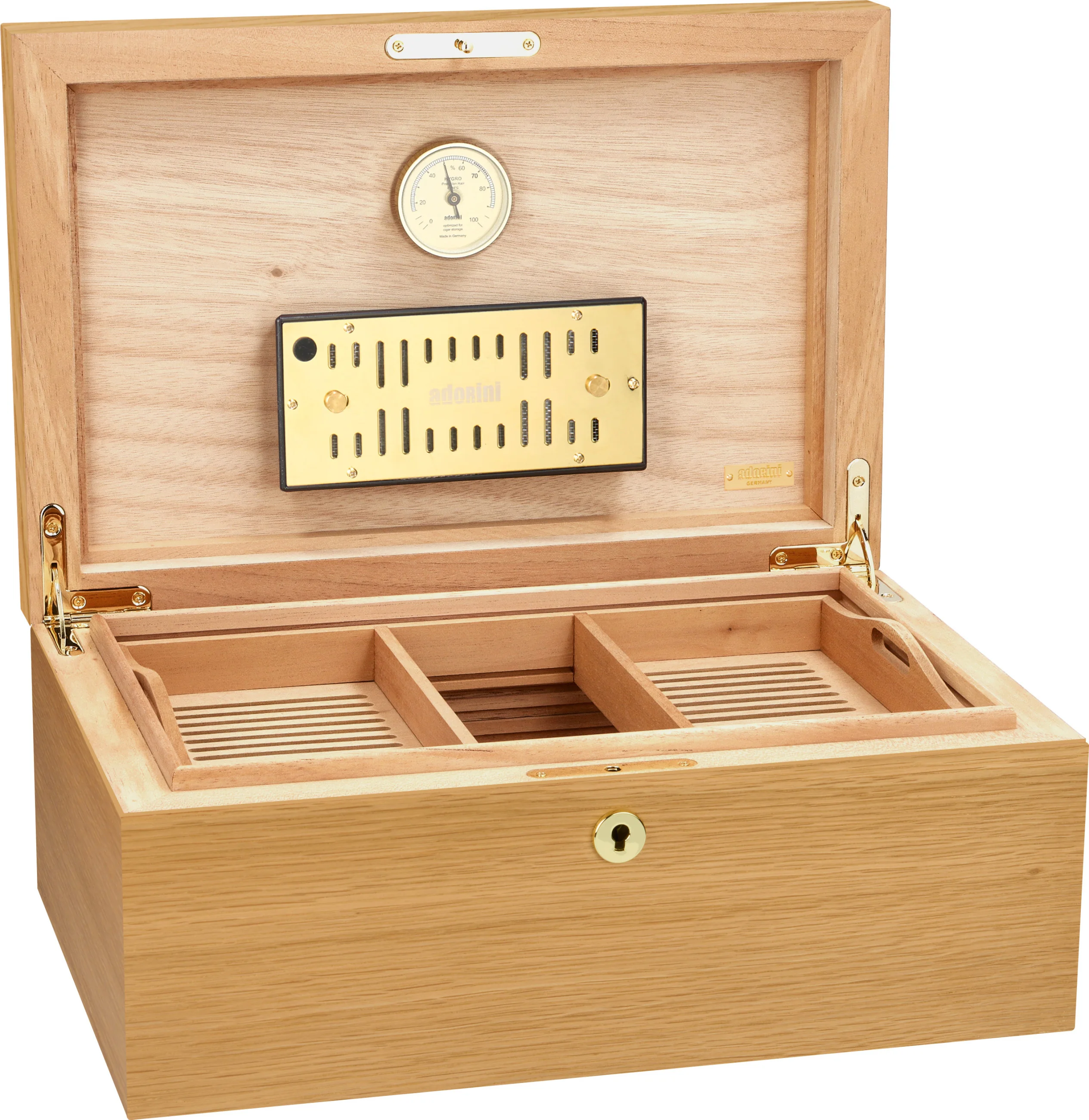 - Pre-kalibrert høy presisjon hårhygrometer, optimalisert for sigarlagring