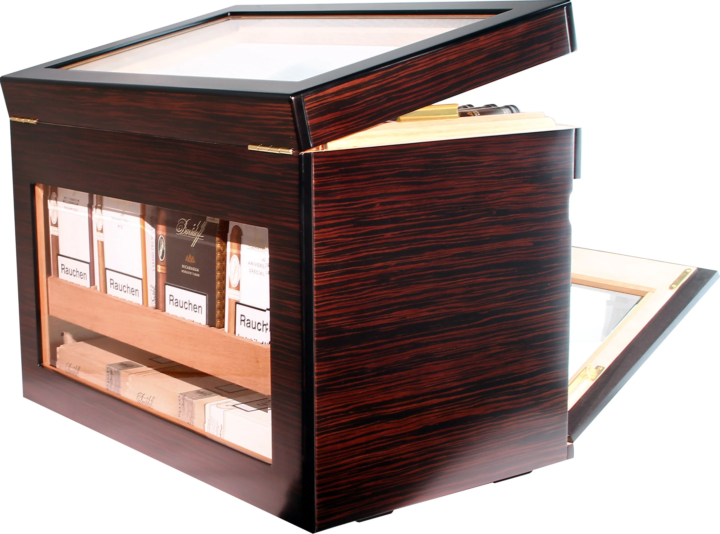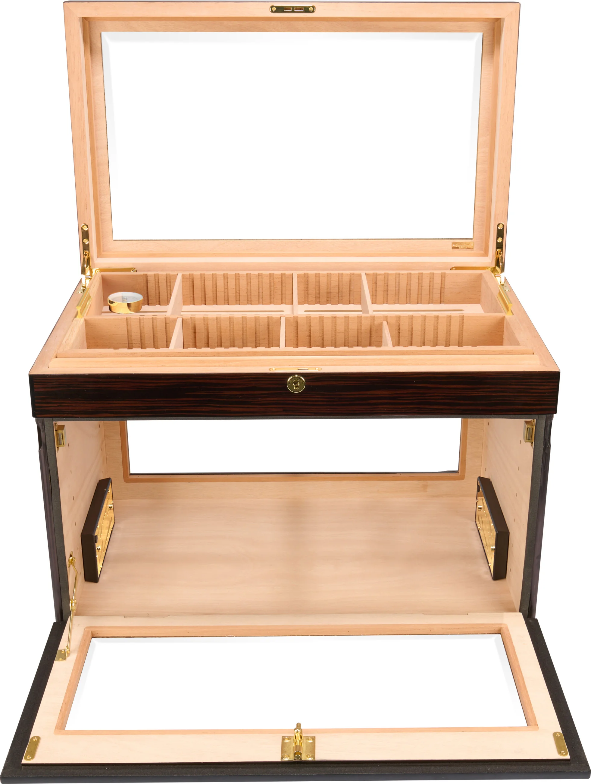 - Pre-kalibrert høy presisjon hårhygrometer, optimalisert for sigarlagring