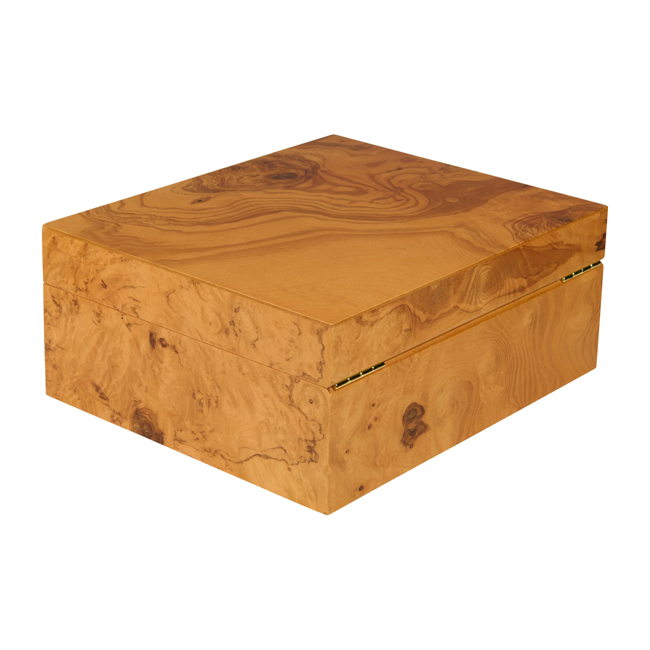 The horizontal and vertical dividers and the label clips allow for even more stylish organization and partitioning of the interior. Adorned with gold elements such as the lock and hinges, the interior presents a harmonious overall impression in combination with the olive wood veneer.