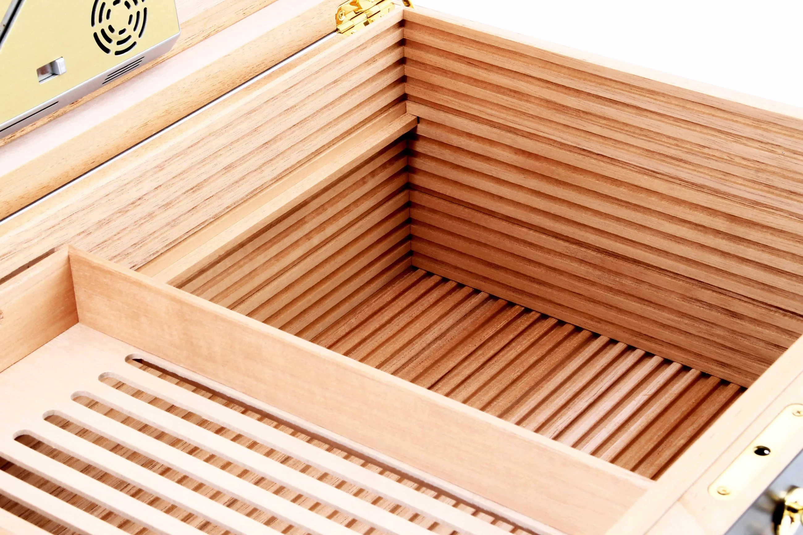 Unike ventilasjonsribber ("RibTech") for forbedret luftsirkulasjon i humidor. Beskyttet adorini-innovasjon