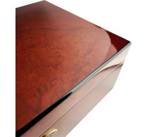 Fra reise- og bordmodeller til store skattkister, en Daniel Marshall humidor er laget utelukkende med materialer av høyeste kvalitet. Vakkert kornet eller burl hardtre er en Marshall-spesialitet, kantet med svart ibenholt som gir humidoren et elegant raffinement. Daniel Marshalls berømte 1000-lags finish legger lag på lag med lakk på humidorene for et slående høyglans-utseende som får frem alt det beste fra trefibre.