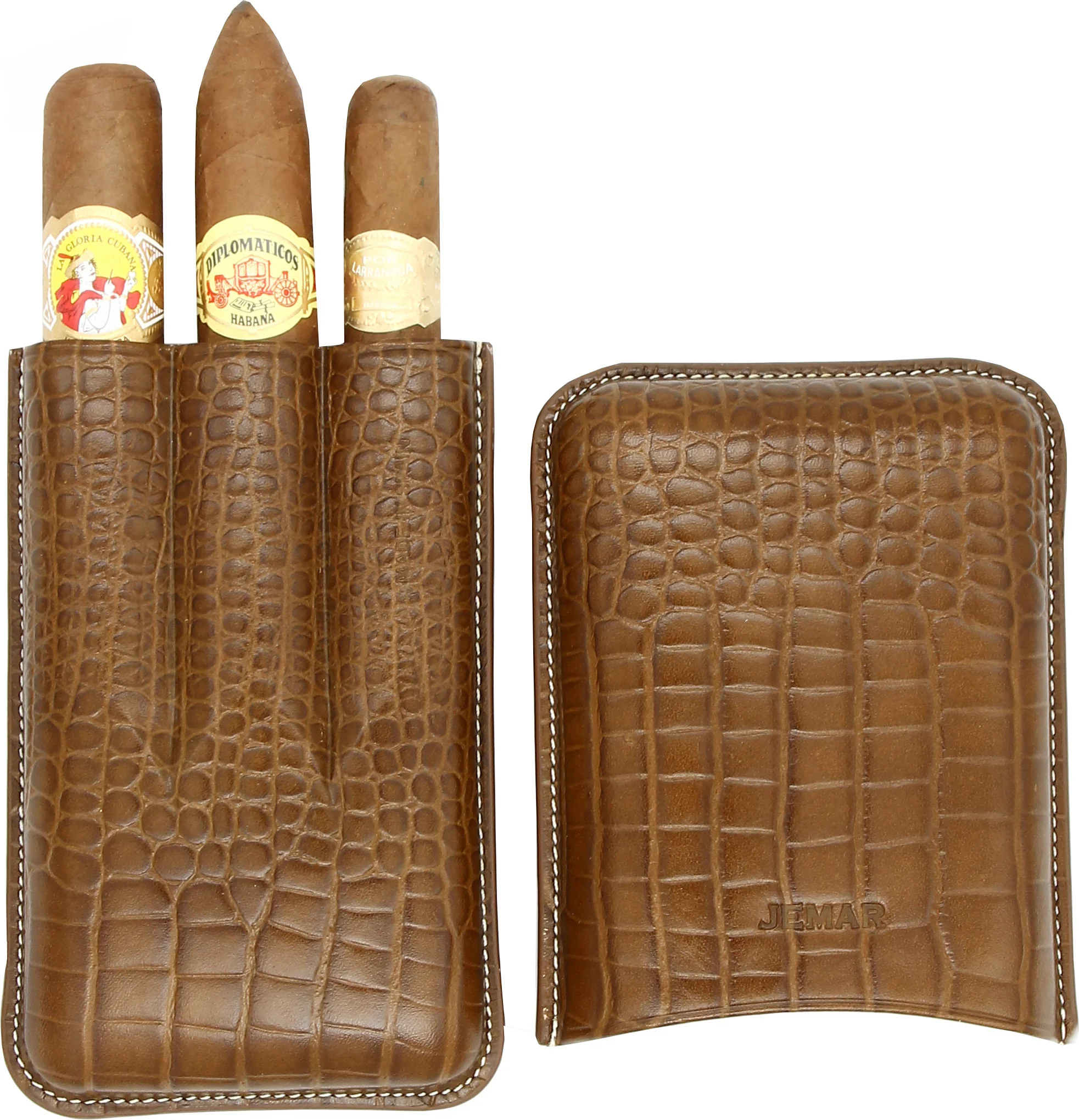 Jemar sigaretui i skinn for tre sigarer, krokodillemønster, Camel