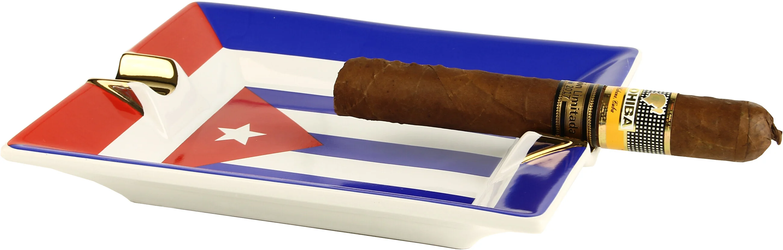 Kjeramisk sigaraskebeger med Kubansk flagg