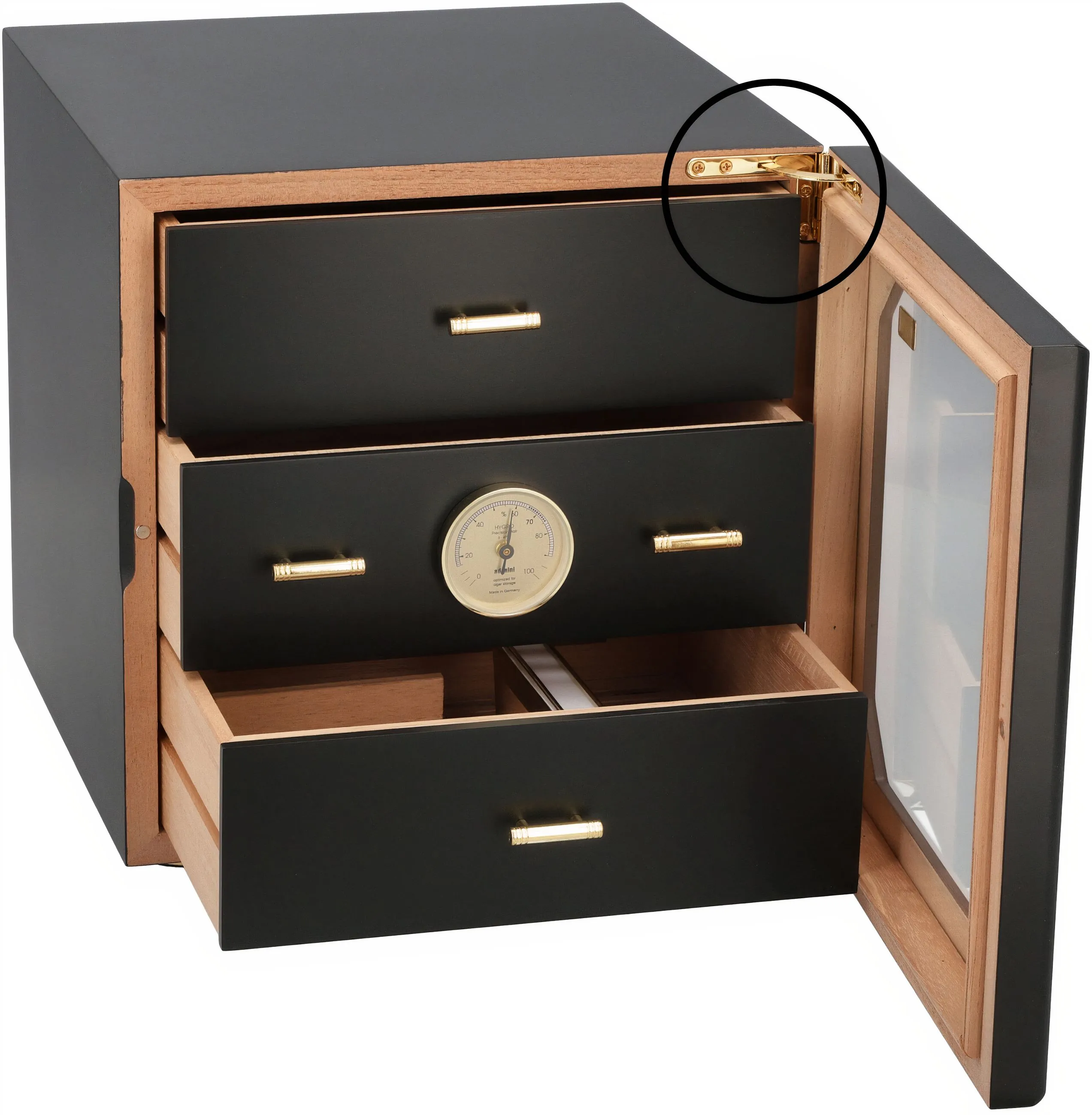 Det lille kvadranthengslet i gull, som måler 30x40 mm, leveres med skruer og er designet for bruk i humidorer med hengslet dør. Det egner seg både til å bygge din egen humidor og til å reparere en eksisterende humidor.