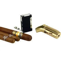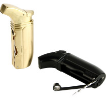 I enten luksuriøs gullfarge eller tidløs svart, gjør lighterens ergonomiske design den behagelig å holde og komplementerer lighterens moderne utseende og vinklede design. En 45-graders tilt hjelper de doble vindbestandige flammene med å levere god presisjon når du tenner sigarer.