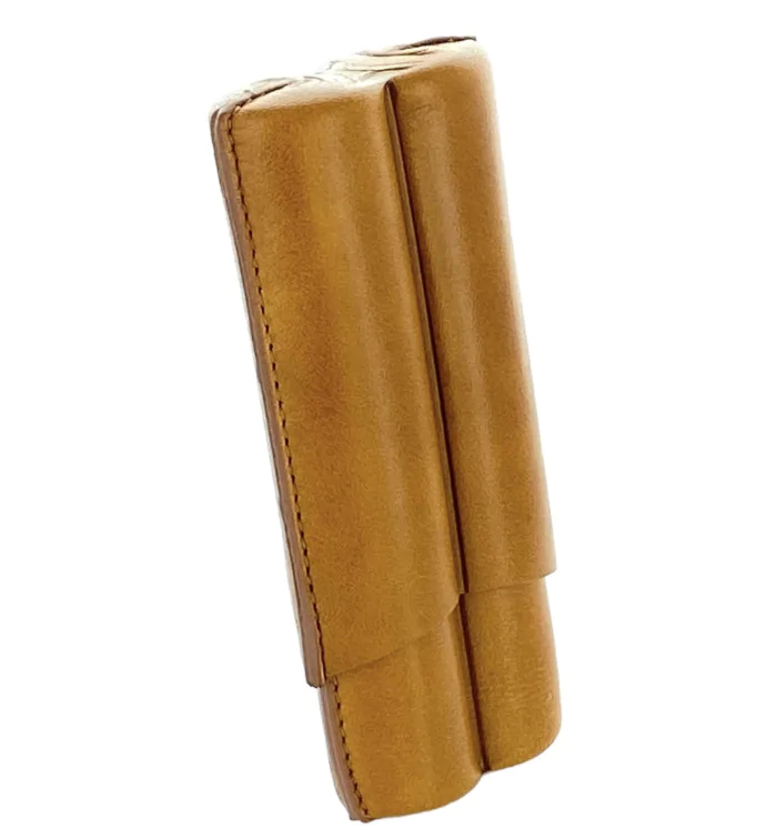 Presenter dine dyrebare sigarer med eleganse og stil i et utsøkt sigaretui laget av ekte lær fra det anerkjente italienske merket Lubinski. Dette kvalitets-etuiet, i en edel cognac-tone, kan romme to sigarer i det populære Robusto-formatet og er et viktig tilbehør for enhver kresen sigarelsker. Naturligvis har det også plass til andre formater i tillegg til det klassiske Robusto. Sigaretuiet fengsler ved første øyekast med sin edle design og den elegante fargen på premium lær. Det smidige skinnet gir etuiet en luksuriøs følelse og beskytter dine verdifulle sigarer mot ytre påvirkninger som trykk og støt. Det kombinerer funksjonalitet med estetisk appell og er et ekte kunstverk når det gjelder håndverk. Innsiden av etuiet er foret med et mykt, fint stoff som gir ekstra beskyttelse for sigarene og bevarer aromaene deres. Den perfekt skreddersydde størrelsen på etuiet sikrer at sigarene dine holdes sikkert på plass uten å ta for mye plass. Nå kan du enkelt og stilig ta med deg sigarene dine hvor som helst, enten det er på reise, spesielle anledninger eller for å nyte i favorittrommet ditt. Lubinski sigaretui er ikke bare et funksjonelt tilbehør, men også et blikkfang. Den subtile pregingen av merkelogoen på forsiden av dekselet gir den et snev av eksklusivitet. Det er et symbol på høyeste kvalitet og håndverk som vil tiltrekke seg oppmerksomheten til andre sigarentusiaster. Enten som en personlig belønning eller som gave til en sigarentusiast, vil ikke et Lubinski sigaretui skuffe deg.