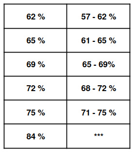 Mange brukere lurer på hvor nøyaktig en Boveda-pakke opprettholder det angitte fuktighetsnivået. Følgende diagram viser den typiske faktiske luftfuktigheten i humidoren - avhengig av hvilken pakkevariant som er valgt.