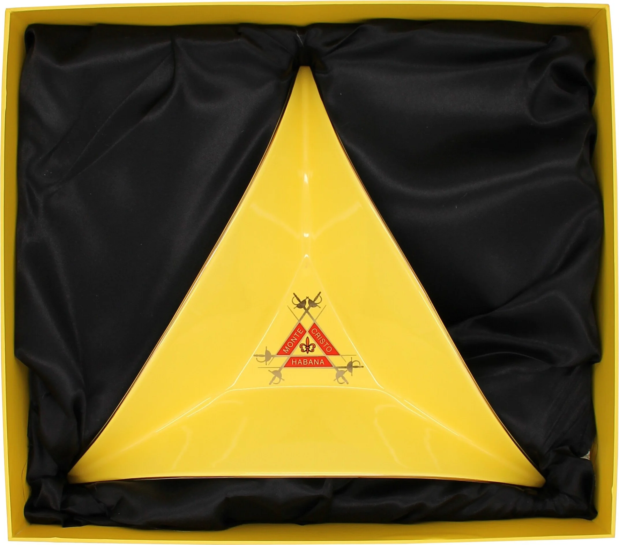 The Montecristo Tricornio Ashtray is far more than an ordinary ashtray. It is an extraordinary design object and a highly sought-after collector's item. Designed in unmistakable Montecristo yellow and featuring the famous brand logo in the center, this accessory becomes a striking symbol of Cuban cigar culture.
