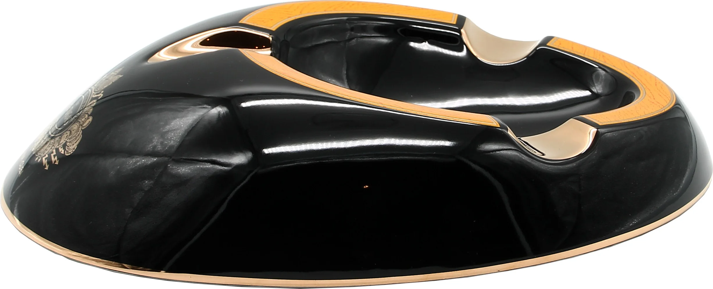 With its dimensions of 30 × 23 × 7 cm, the ashtray makes an impressive and sophisticated statement on any table. It is easy to clean; however, hand washing is recommended to protect the decoration.