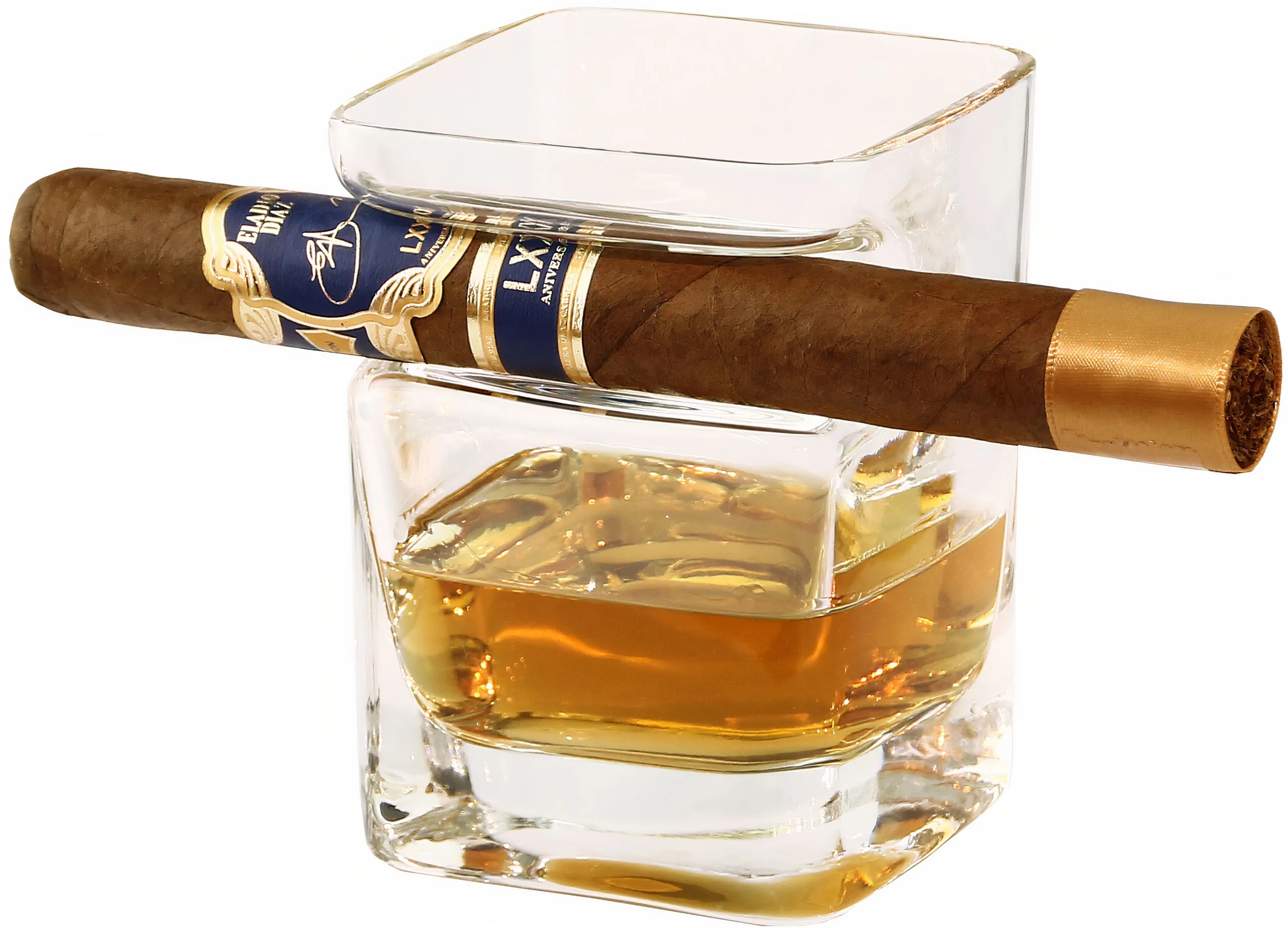 Rom- og whiskyglass med sigarholder – perfekt symbiose av nytelse og design