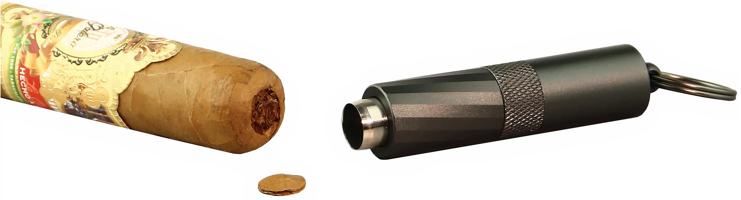 Med en lengde på 6,5 cm og en diameter på 1,6 cm (uten nøkkelring) er dette et kompakt og enkelt verktøy å ha med seg. Den gjennomtenkte funksjonaliteten kombinert med et stilrent design gjør dette sigarboret til en uunnværlig følgesvenn for enhver entusiast.