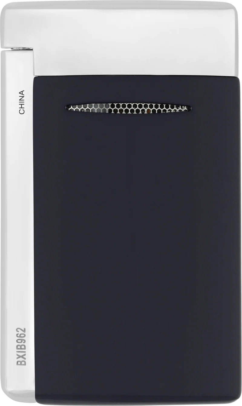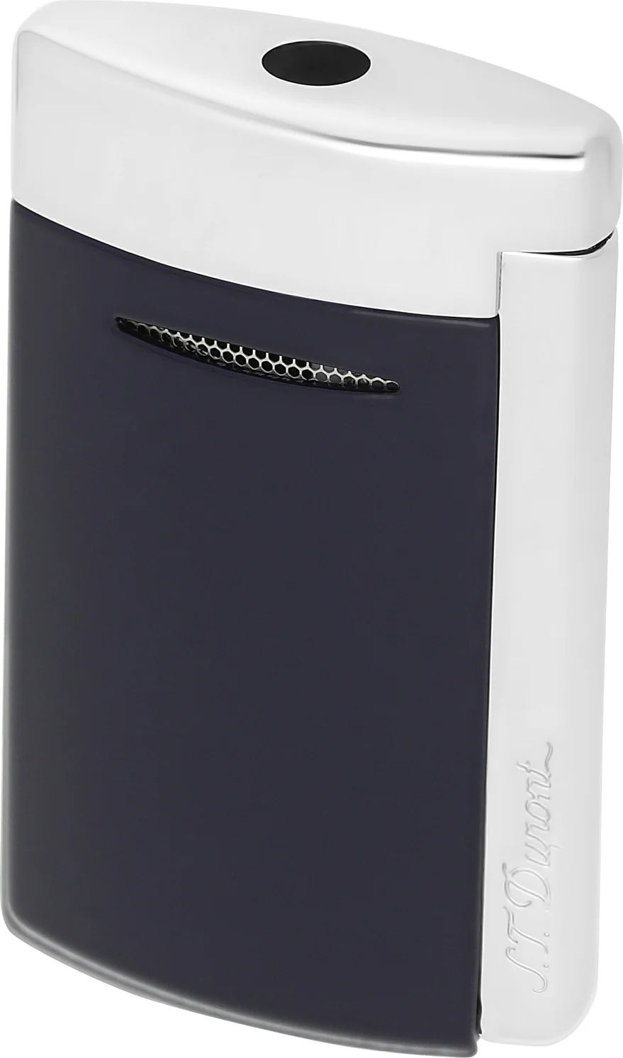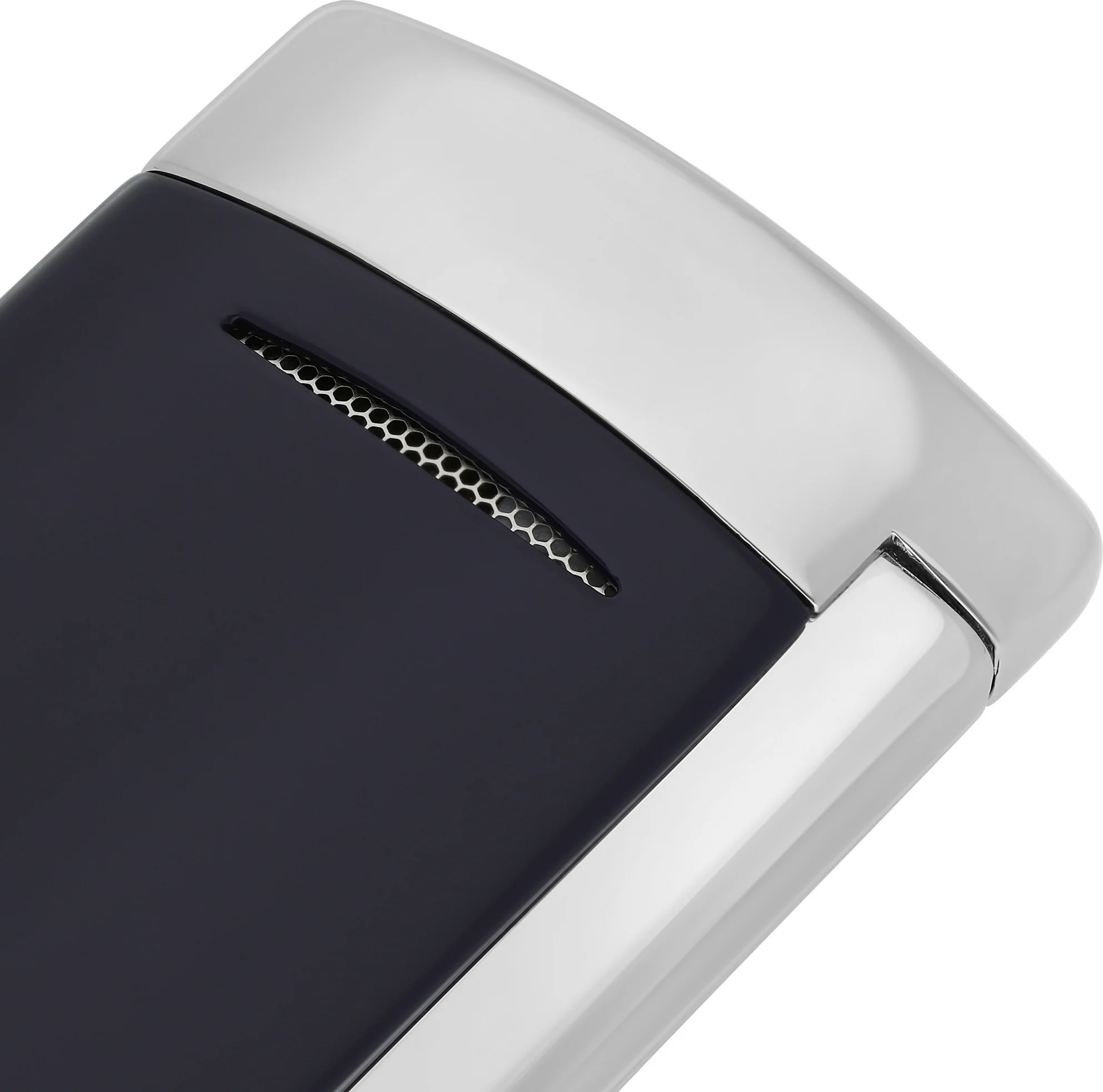 S.T. Dupont Minijet lighter i dyp blå med kromdetaljer er en elegant og praktisk lighter som imponerer med kraftig jetflamme og elektrisk piezotenning. Den matte blå finishen med polerte kromdetaljer gjør den til et stilfullt tilbehør for daglig bruk.