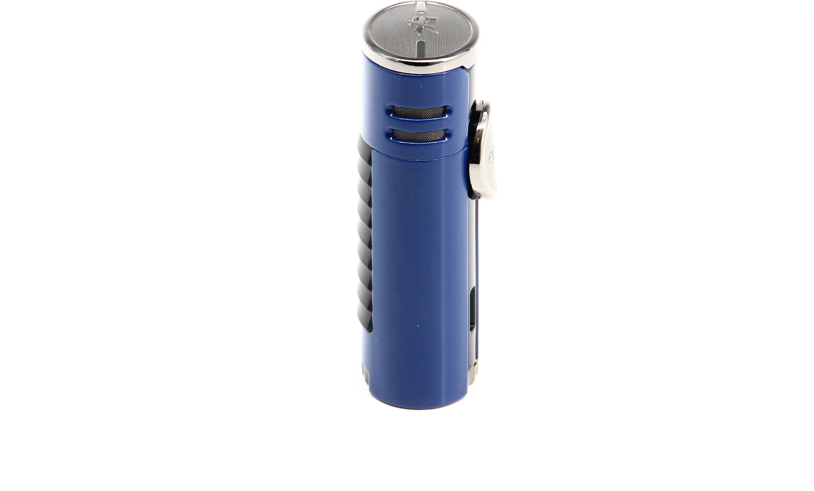 Denne Xikar HP4 Quad Lighter fanger umiddelbart oppmerksomheten med en slående blå finish som er understreket med krom-aksenter. Minner om superbilene som inspirerte lighterens design, gir et lameller på bakpanelet ekstra stil til det slanke og moderne utseendet.